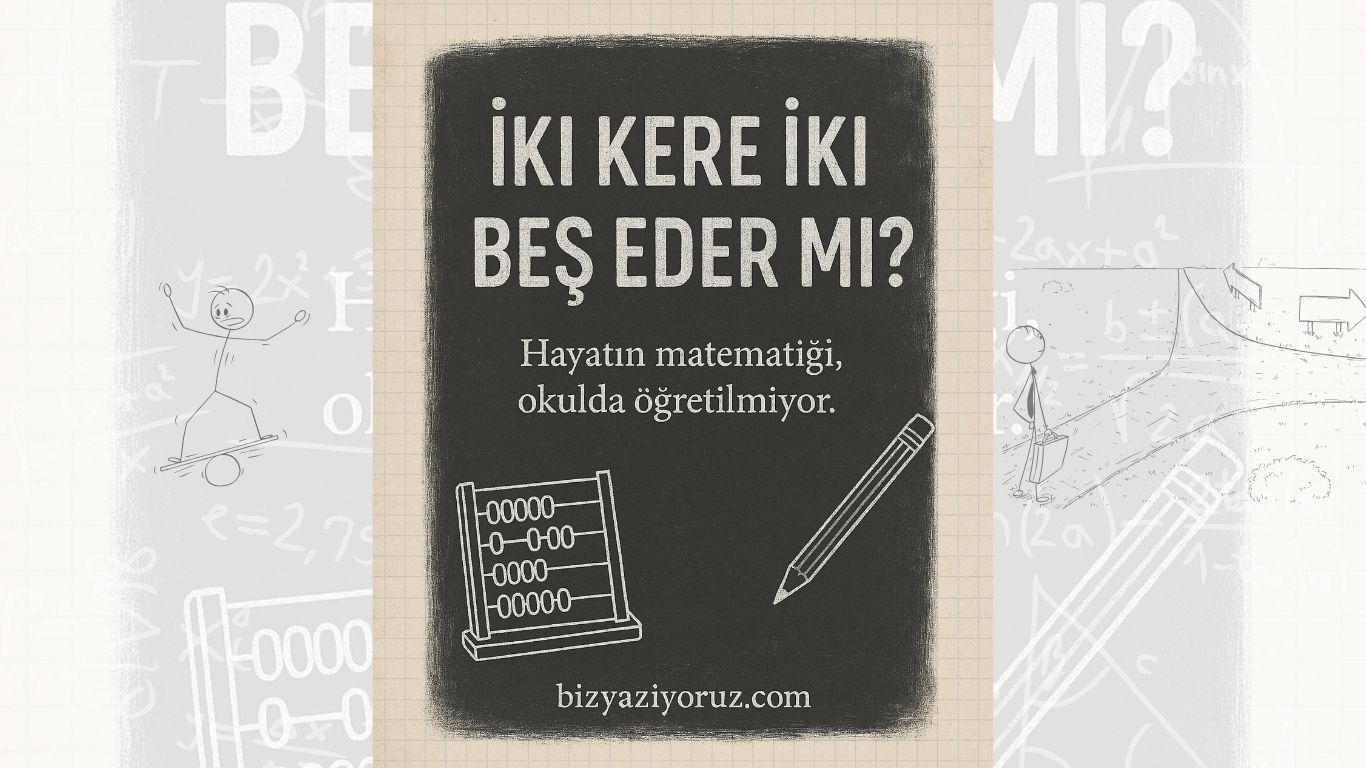 Ama yaşam bir matematik problemi değil ne yazık ki. Hayatın matematiği okullarda öğrenilmiyor. Matematikte önüme konan her problemi çözerim ben hem de gözü kapalı, eğitimini aldım ama öyle problemler kuruyor ki Felek Hoca, bildiğim hiçbir teorem fayda etmiyor. Kara tahtanın başında, elimde tebeşir, çaresiz kalıyorum. Hoca Felek, gözlüklerinin üstünden bana bakıyor, elinde kara kaplı not defteri. Öklid, Pisagor nerdesiniz, ya sen Farabî? Kafa kafaya versek diyorum, iki kere iki beş eder mi?